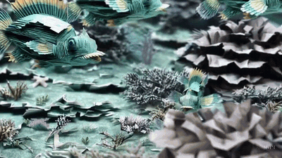 Prompt: “A gorgeously rendered papercraft world of a coral reef, rife with colorful fish and sea creatures.”